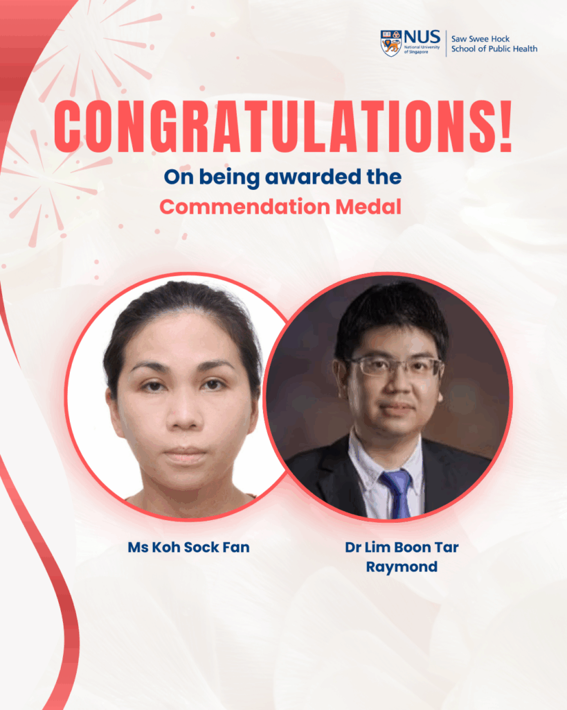 We congratulate Prof Alex R Cook and Assoc Prof Liow Chee Hsiang on receiving the Public Administration Medal (Bronze), which honours public officers who have demonstrated outstanding efficiency, competence, and industry in their service.