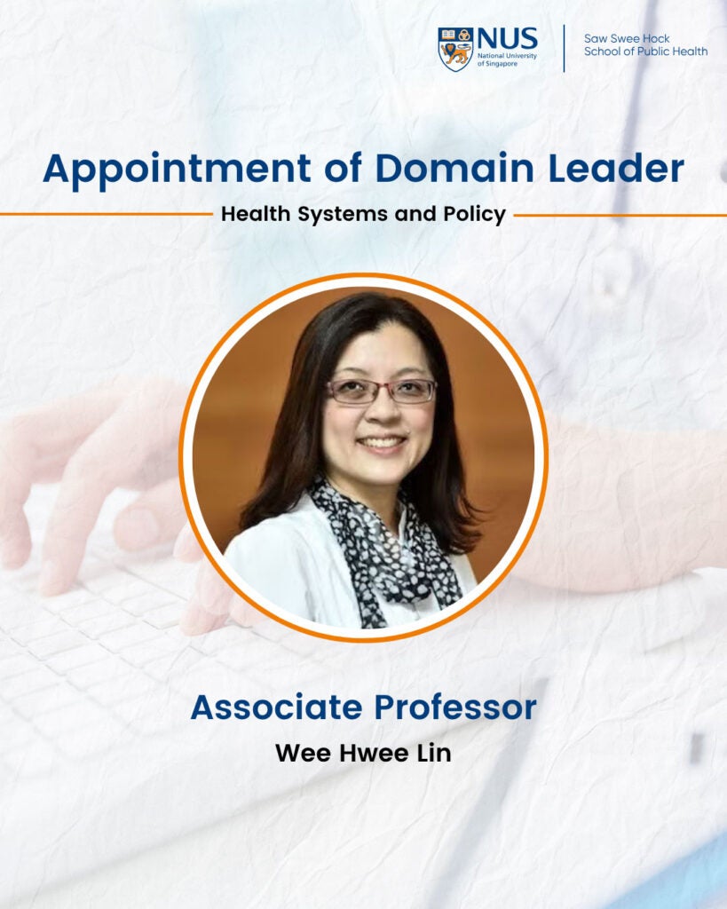 Appointment of Associate Professor Wee Hwee Lin as Domain Leader (Health Systems & Policy)