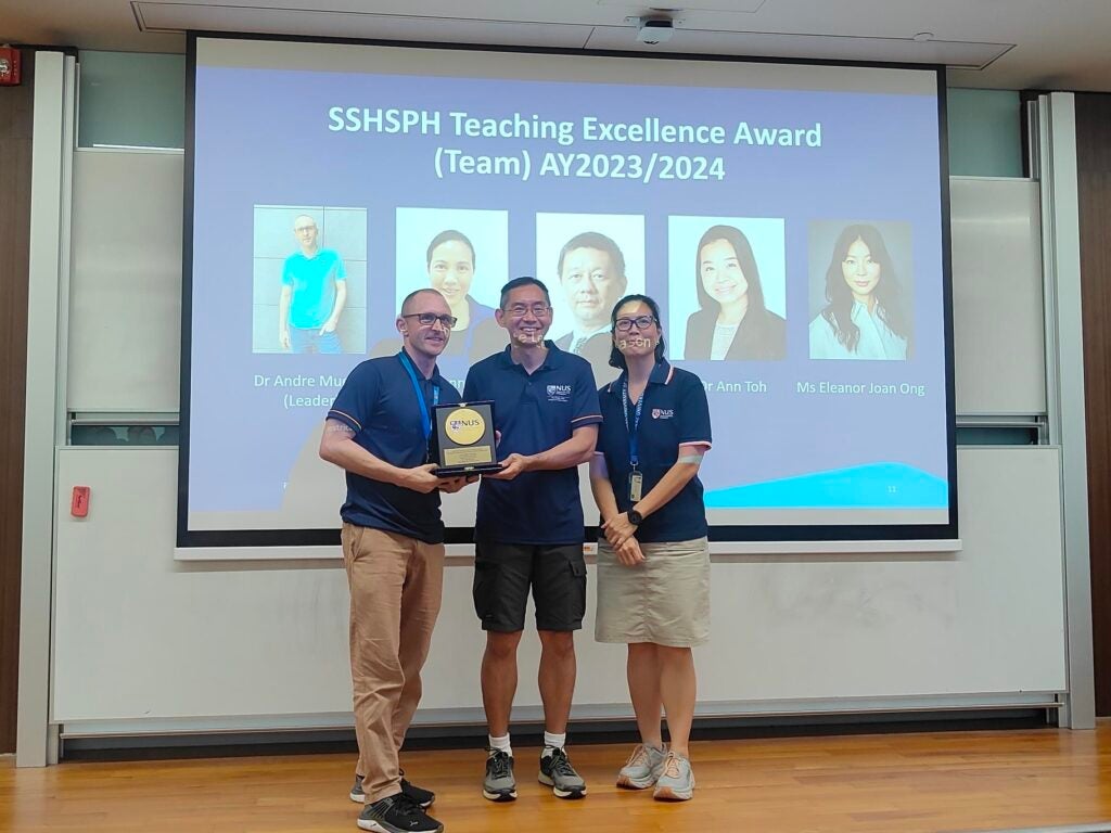 Senior Lecturer Andre Mueller, Assoc Prof Jeannette Lee, Assoc Prof Jason Yap, Adjunct Lecturer Ann Toh, Ms Eleanor Joan Ong were awarded the SSHSPH Teaching Excellence Award (Team).