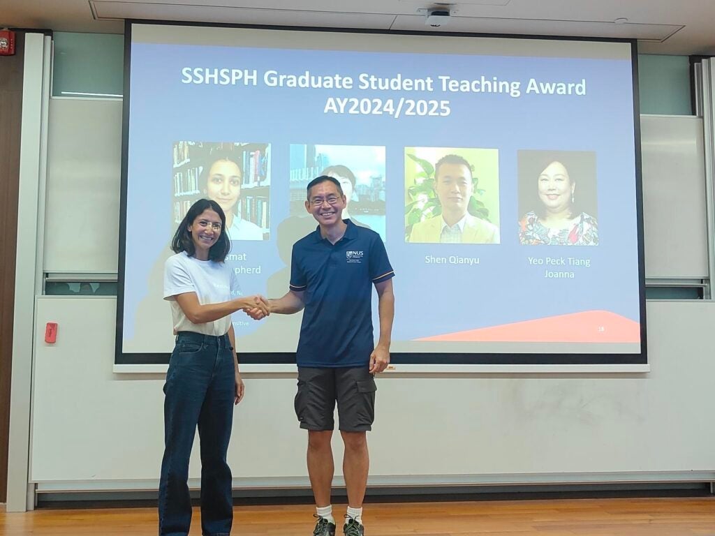 Afifah Ismat Rahman-Shepherd, Mu Rong, Shen Qianyu, Yeo Peck Tiang Joanna were awarded the SSHSPH Graduate Student Teaching Award.
